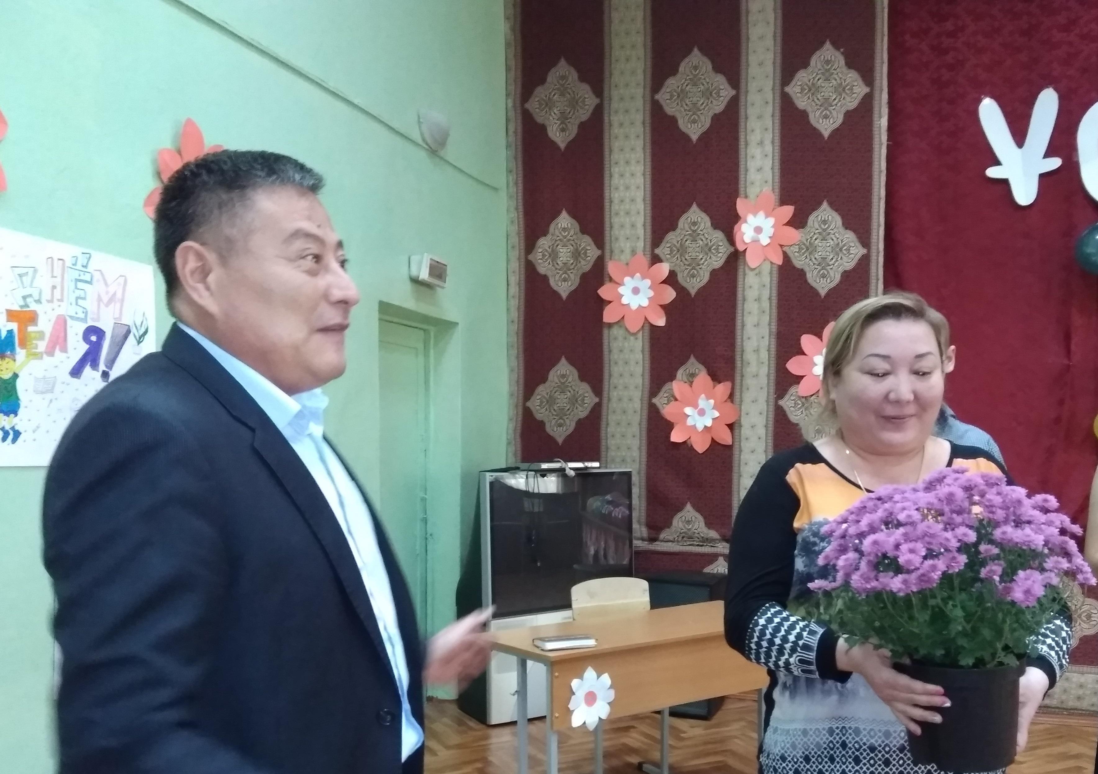 Педагогов с профессиональным праздником поздравил директор школы Искаков Н.Ж. Пожелав здоровья, счастья, успехов на их нелегком поприще.