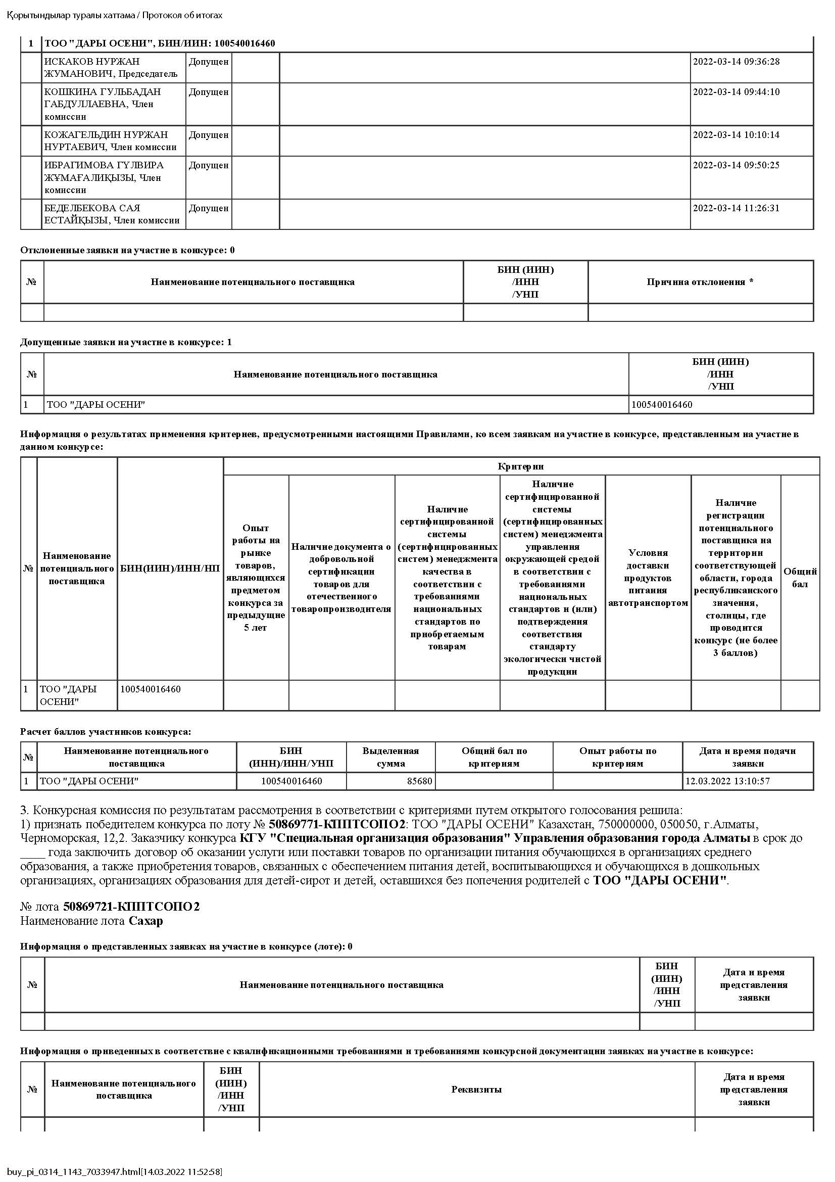 14 март 2022 Протокол об итогах повторн. конкурс по приобр-ю товаров питания 2022г. priotokol-ob-itogah-povtornaja.pdf [517,15 Kb] (cкачиваний: 11) Посмотреть онлайн файл: priotokol-ob-itogah-povtornaja.pdf